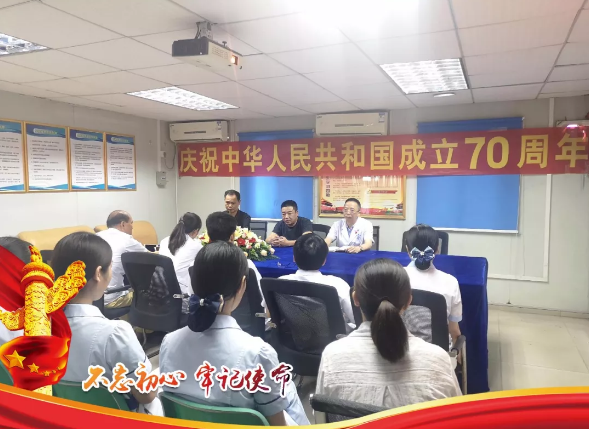 热烈庆祝中华人民共和国成立70周年!9月27日下午,广州康华男科医院在六楼会议室,召开庆祝祖国建国70周年会议,医院党支部围绕以“不忘初心、牢记使命”主题,院领导、党支部书记、科室主任以及医护代表参加了会议。